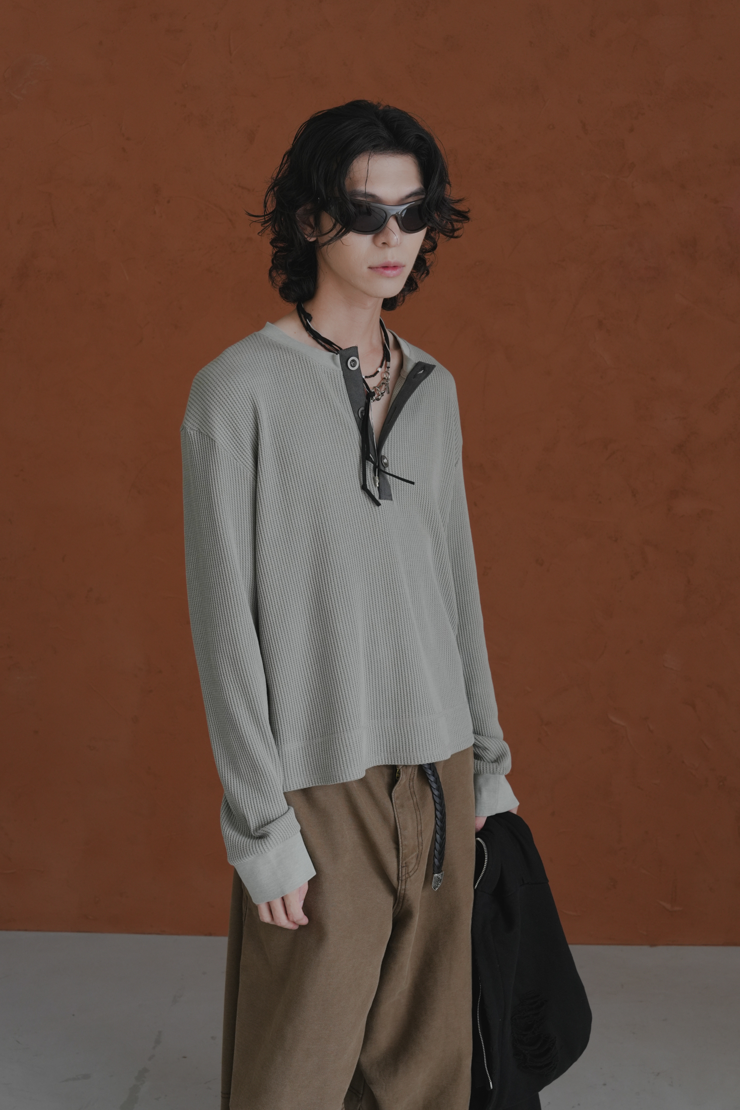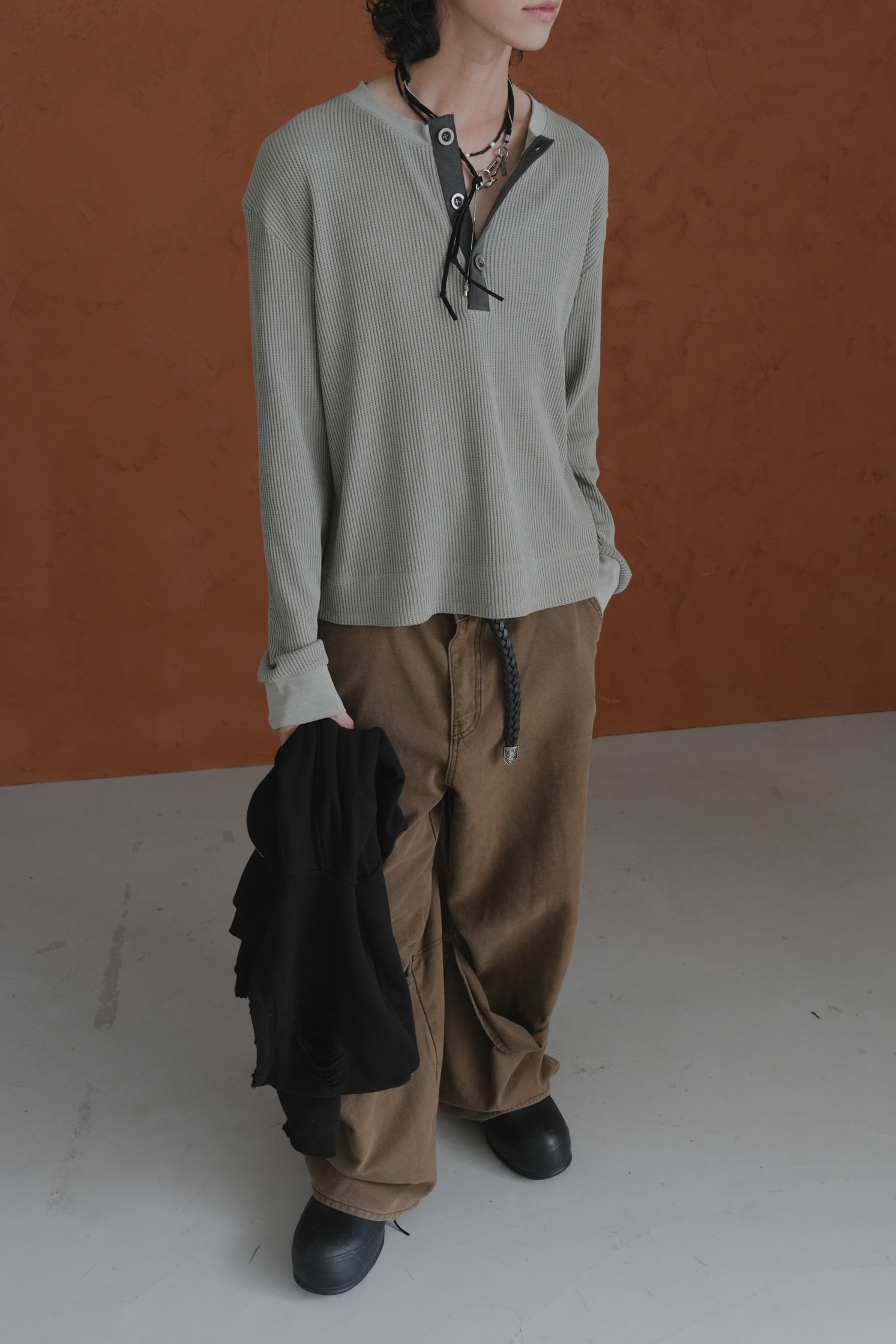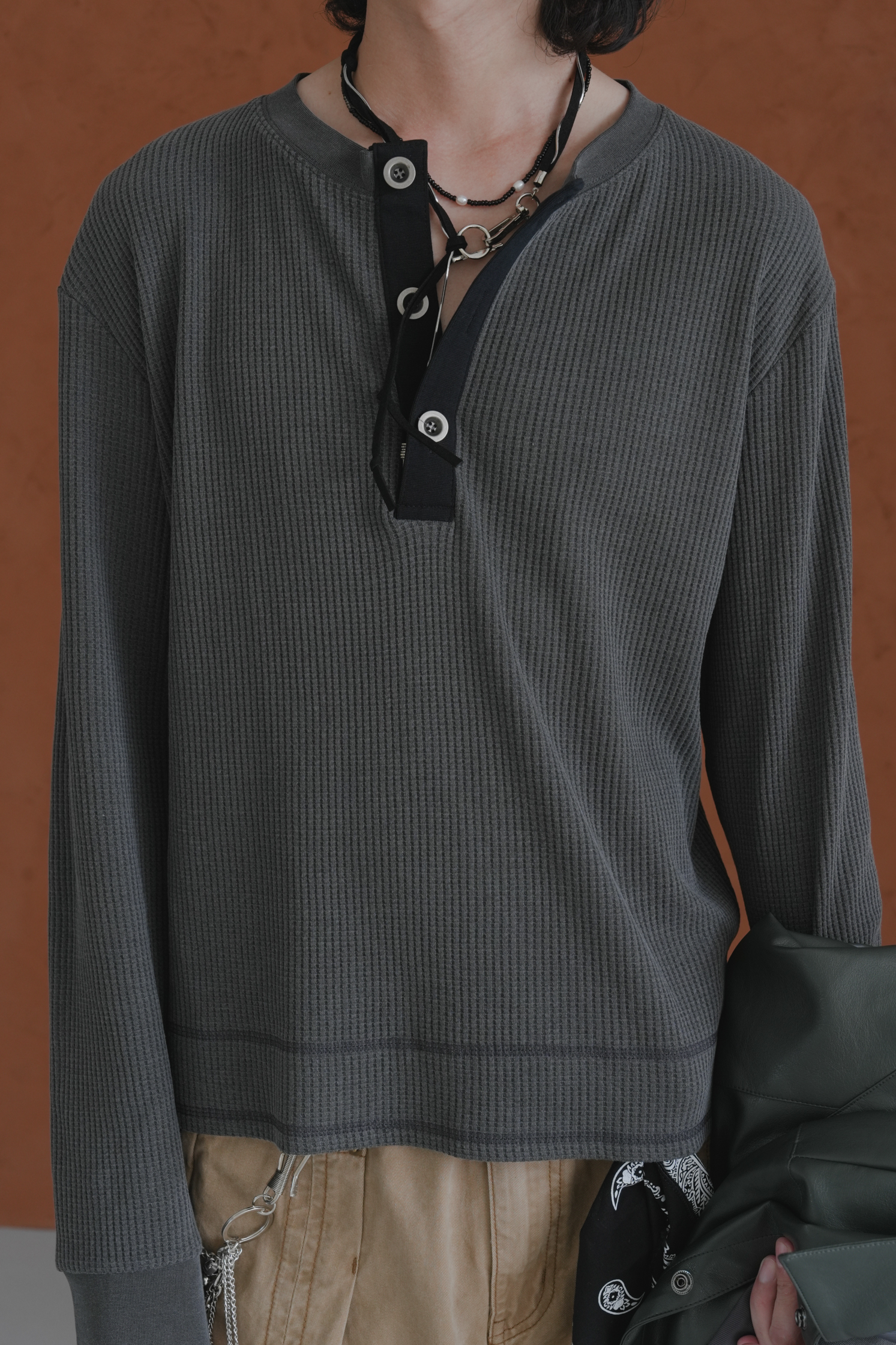 Essential Cropped Waffle Henley #上衣