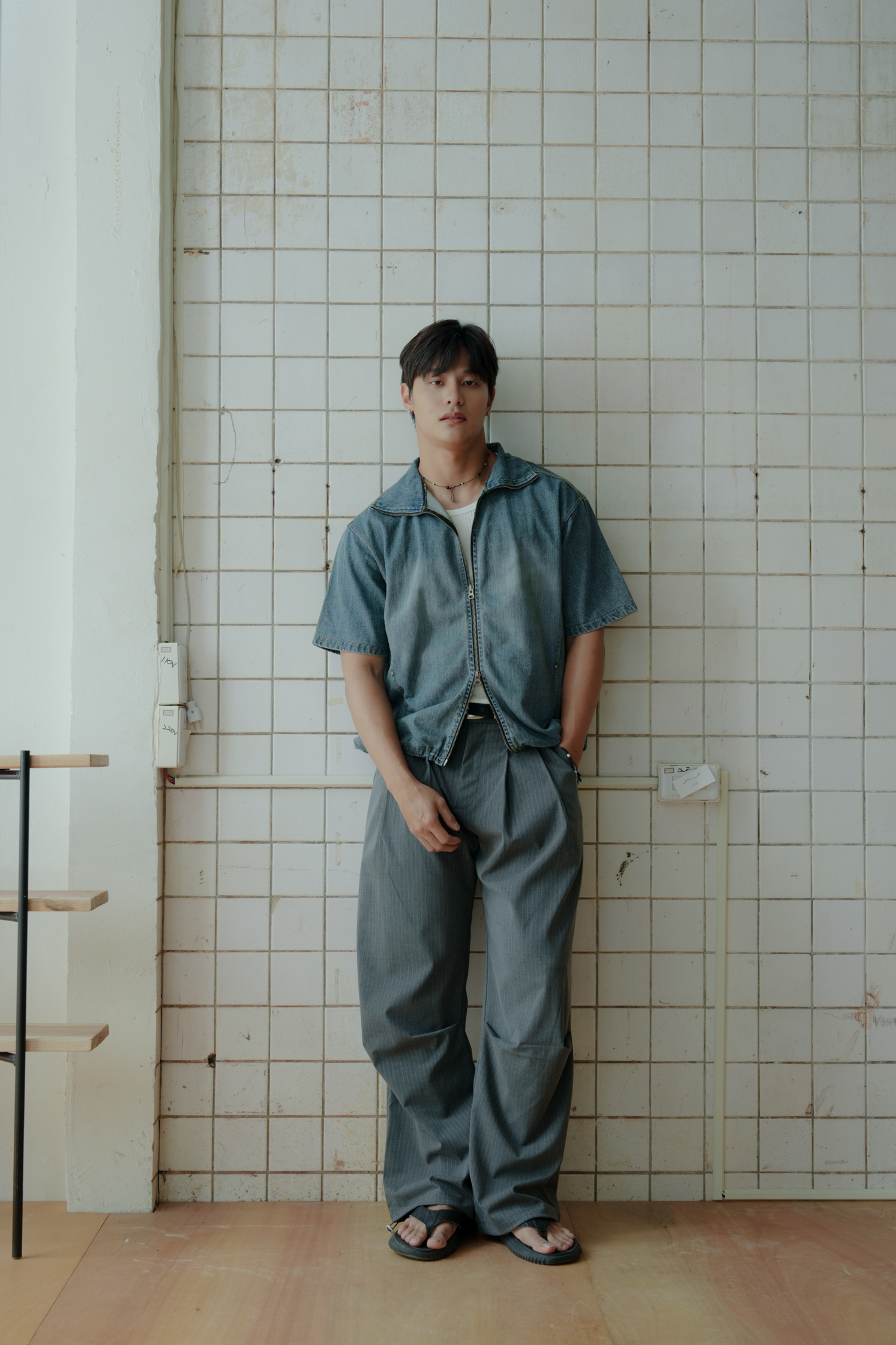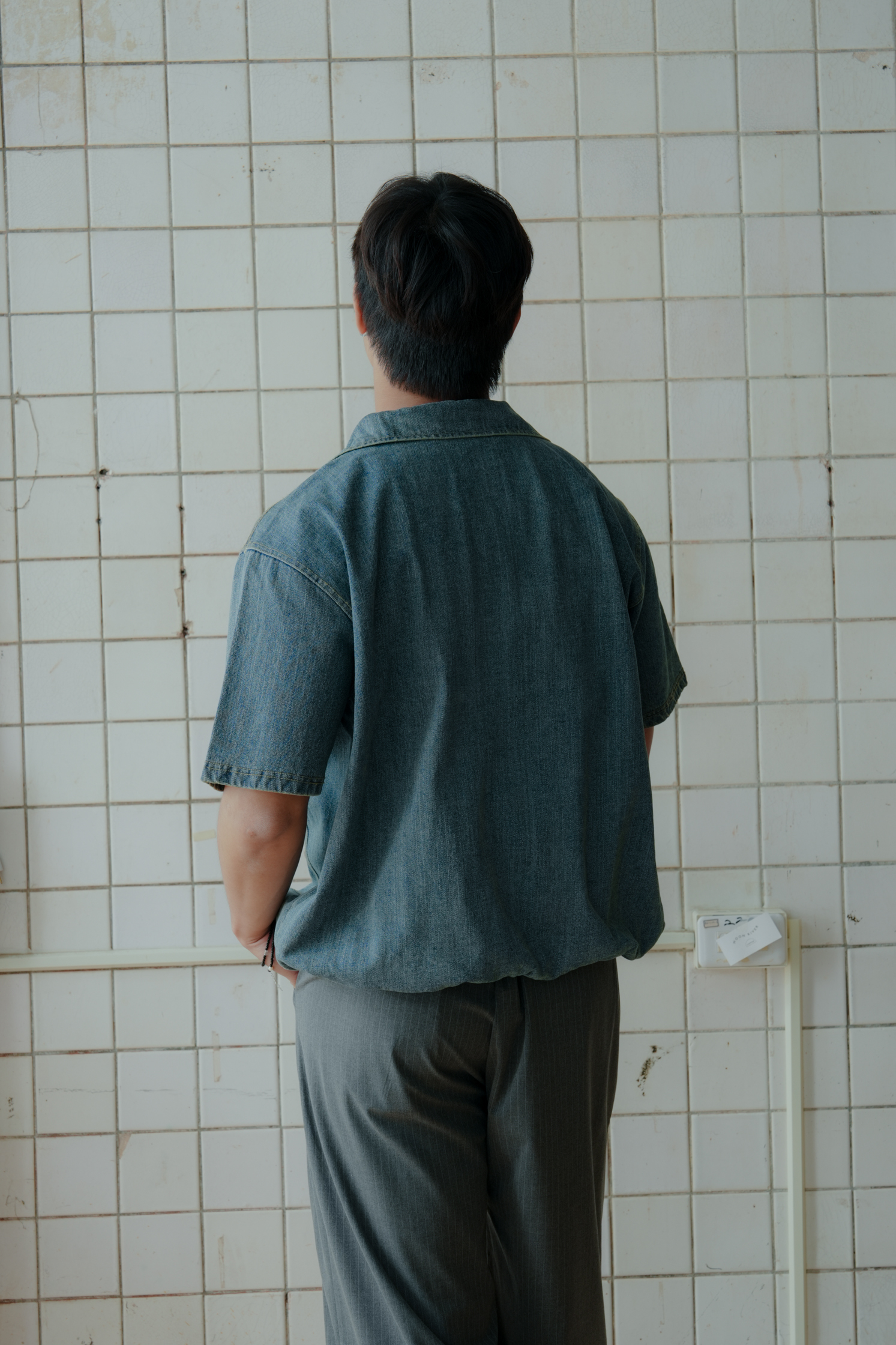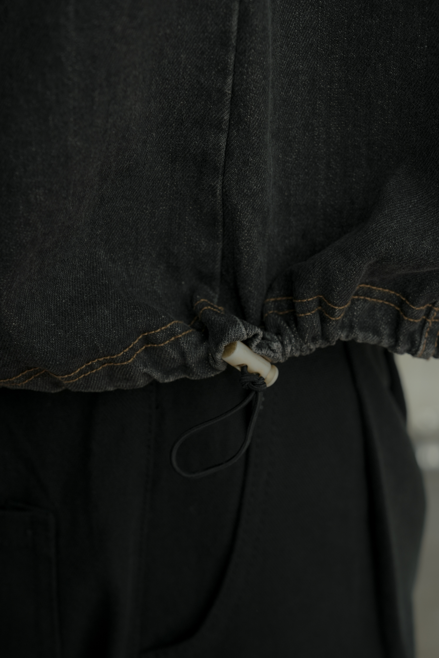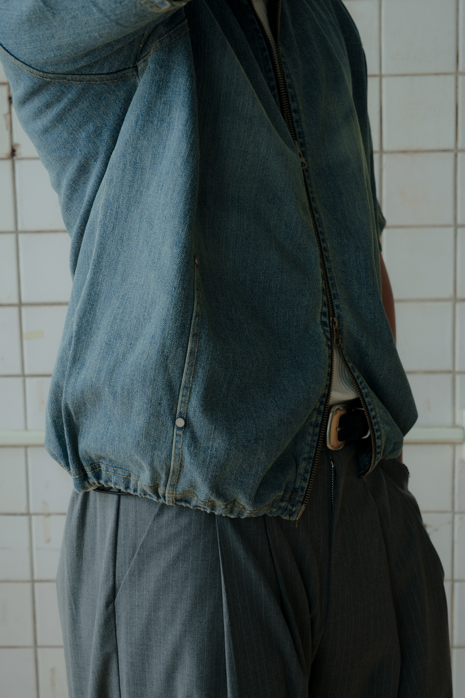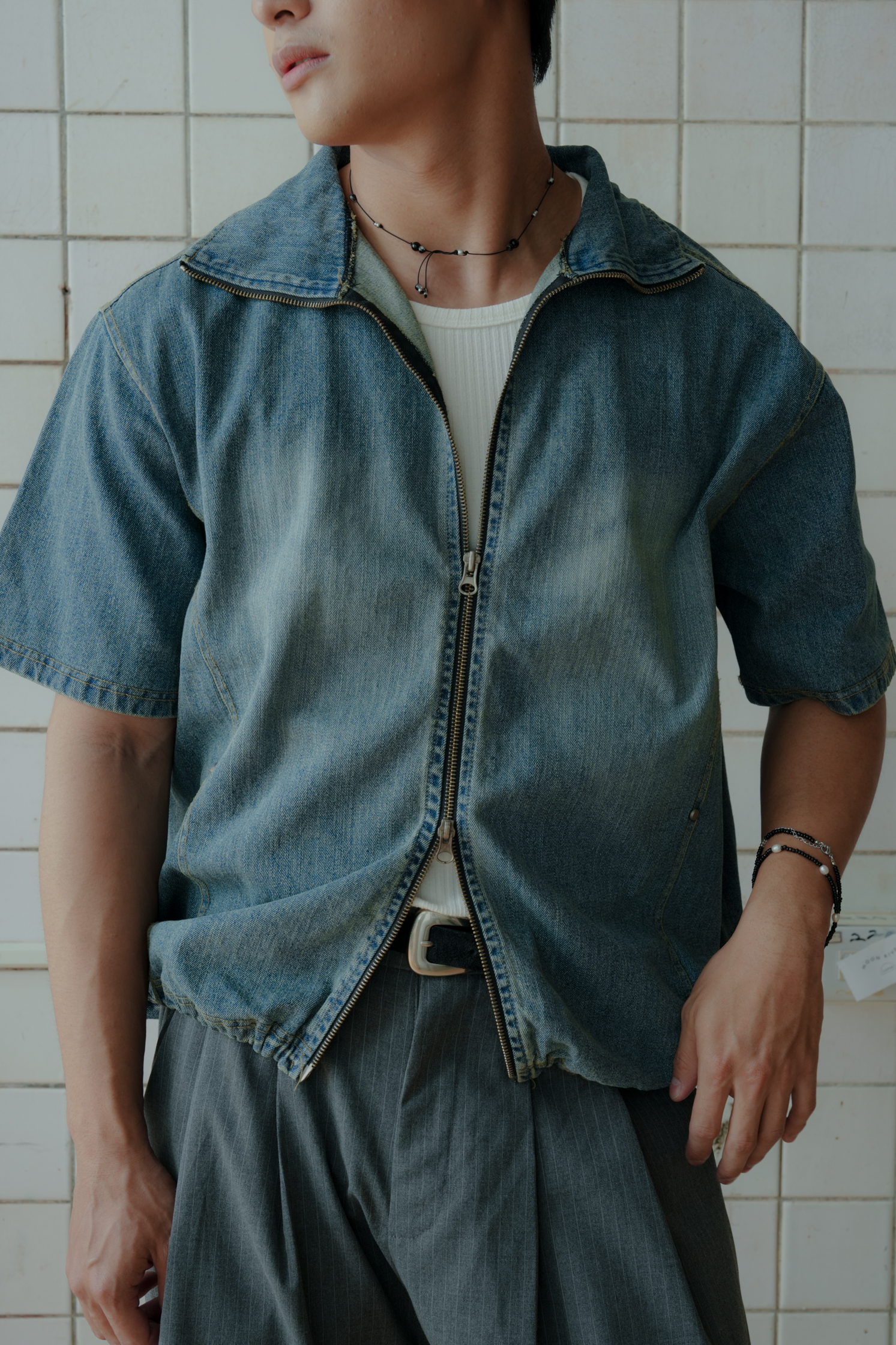 Kai Denim String Short Sleeve Zip Up #上衣