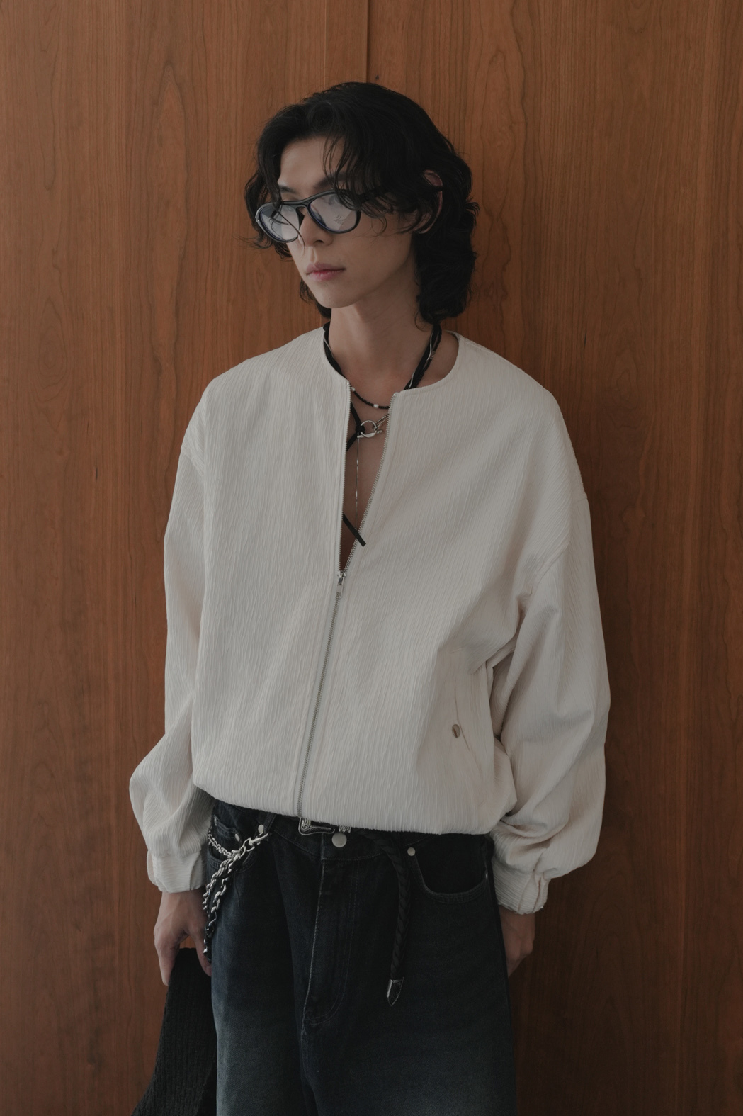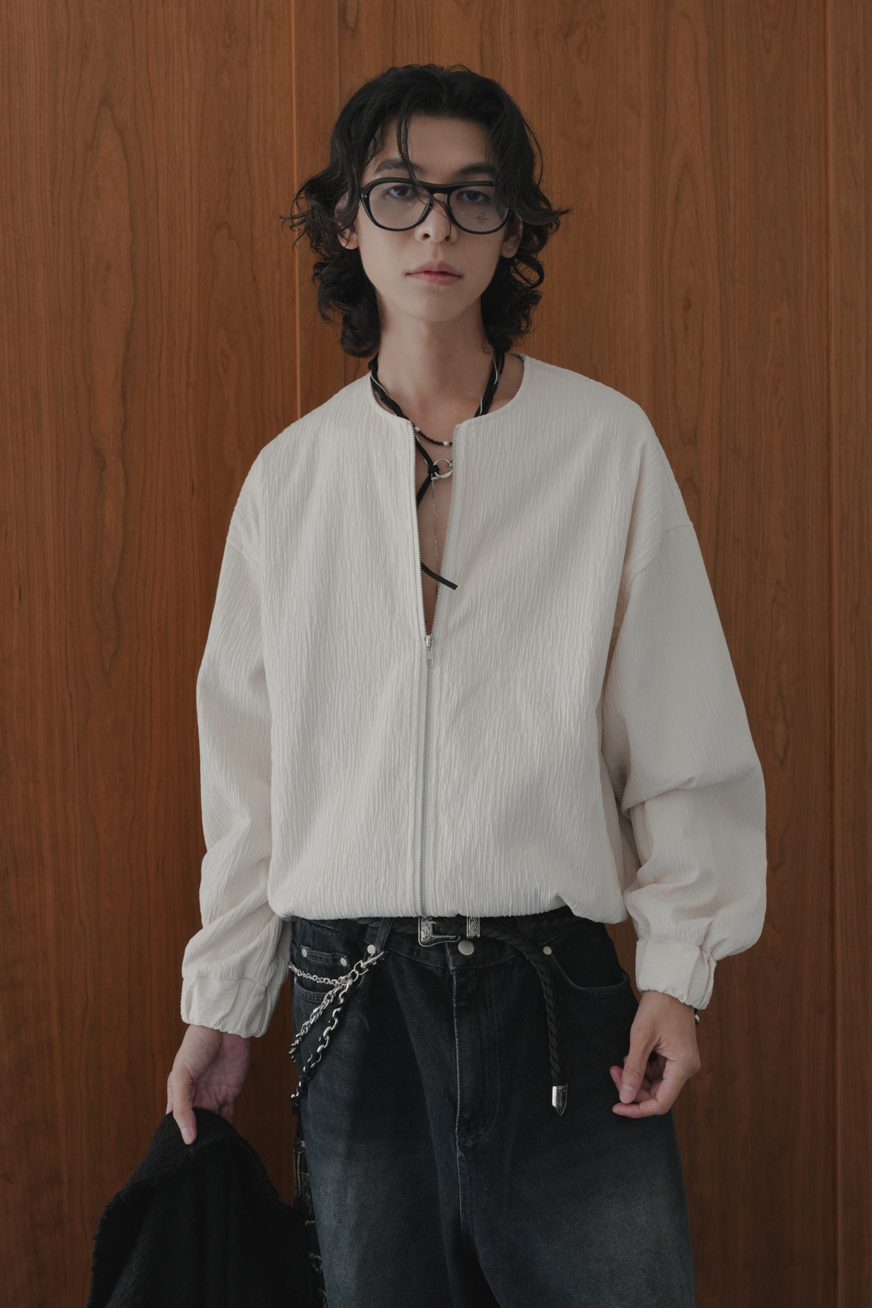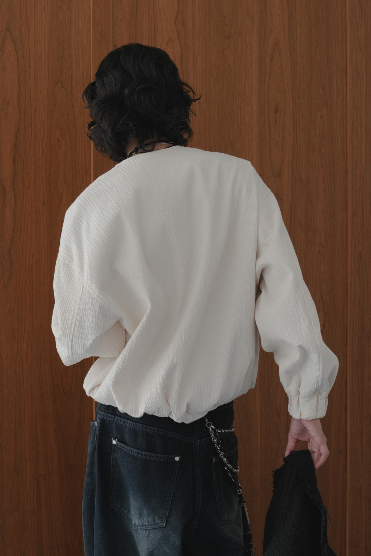 Pleated Round Neck Blouson #外套