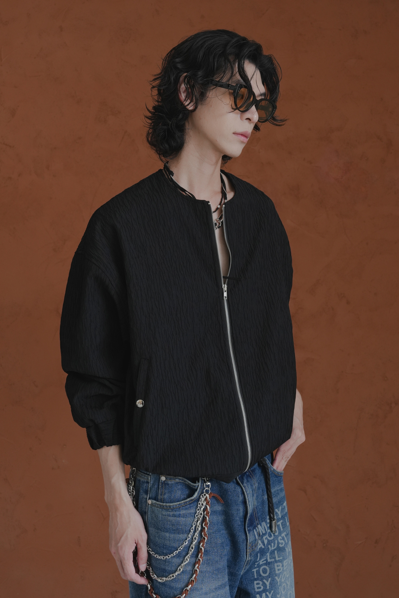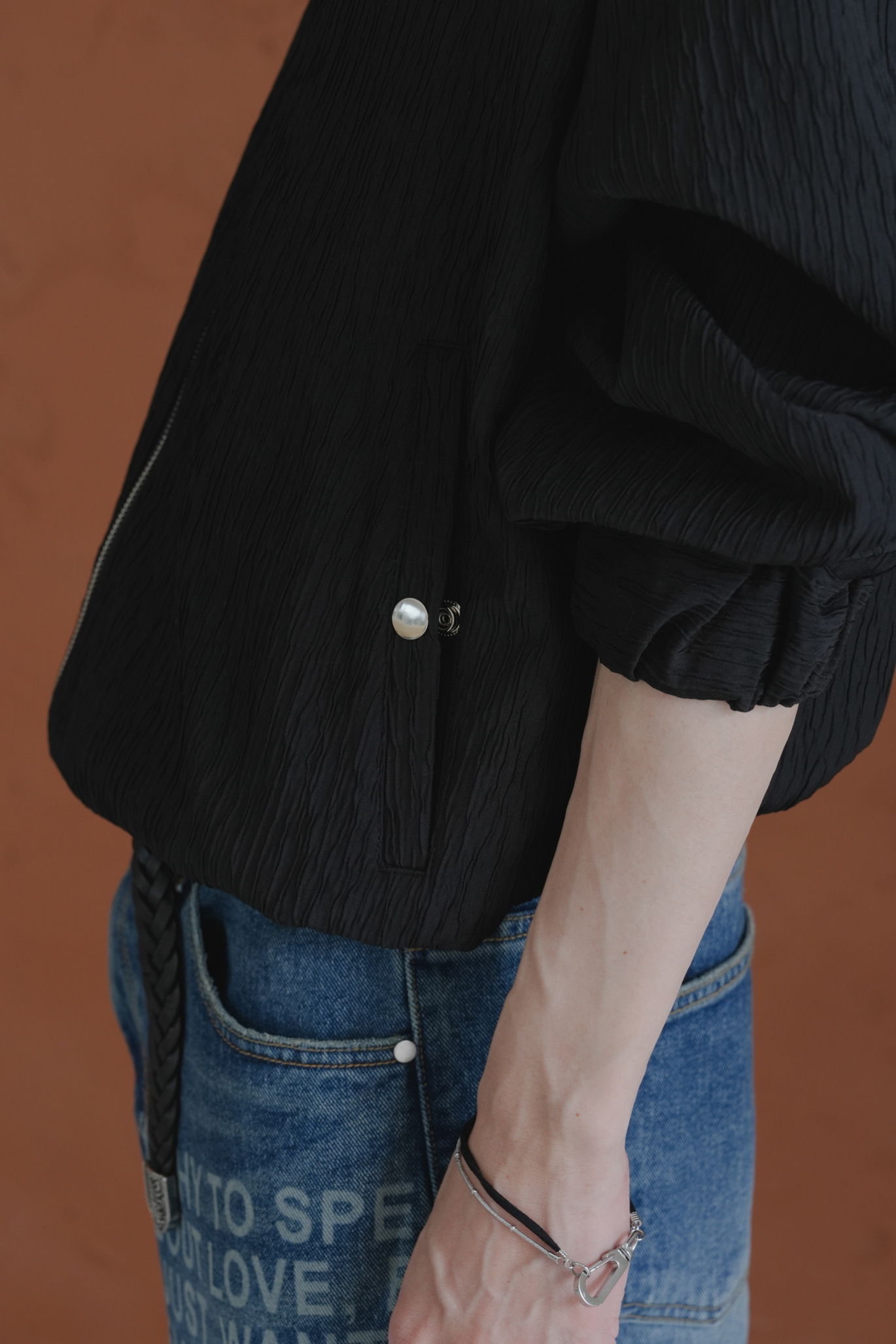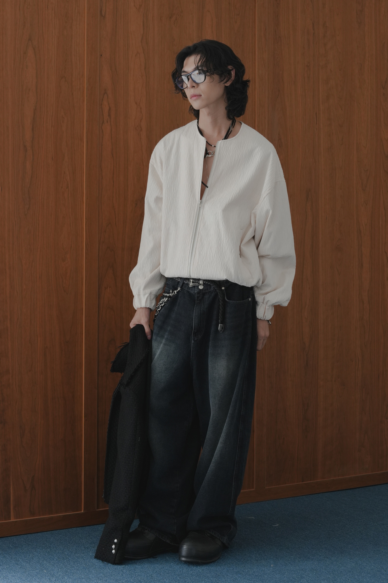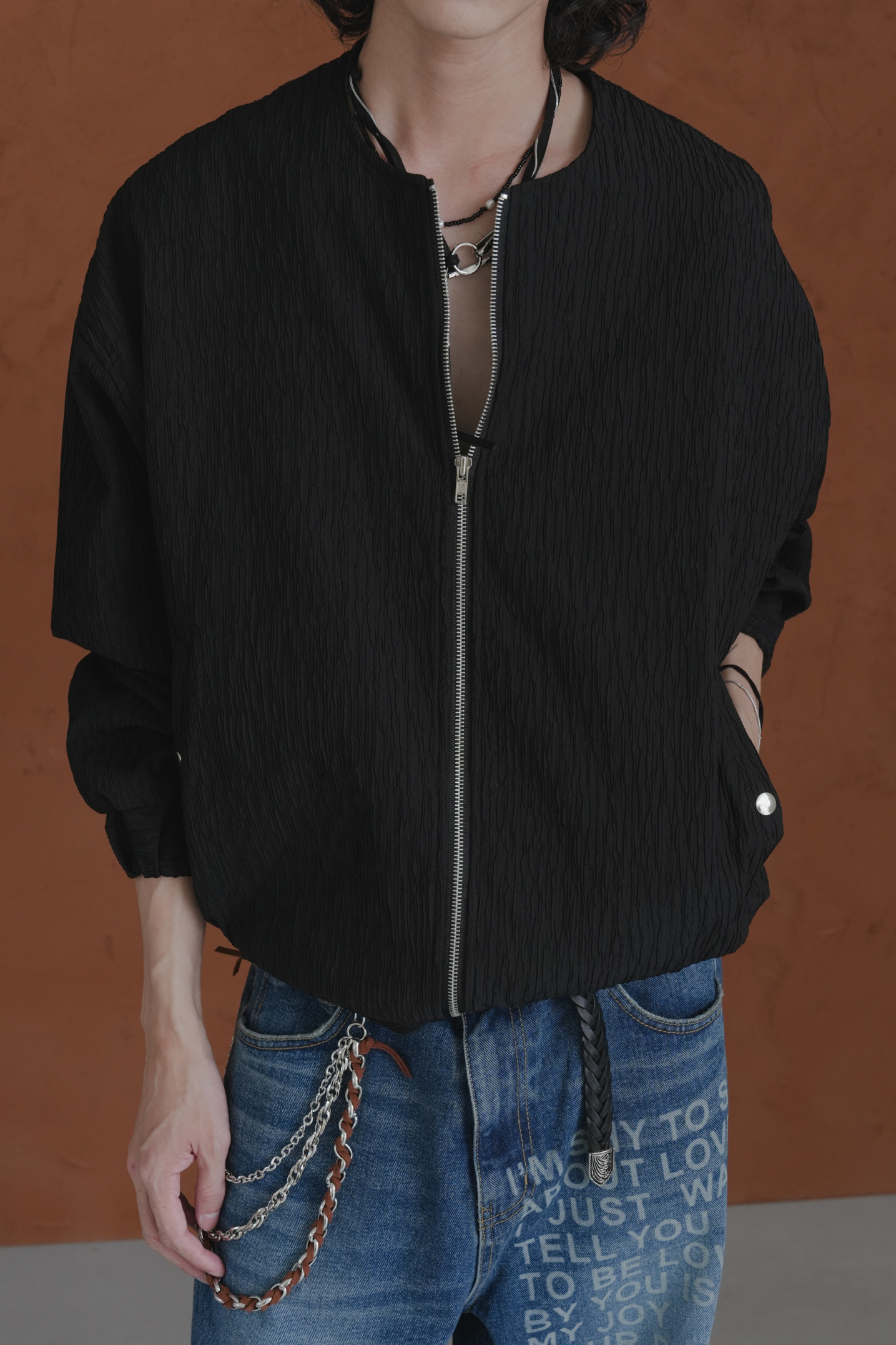 Pleated Round Neck Blouson #外套