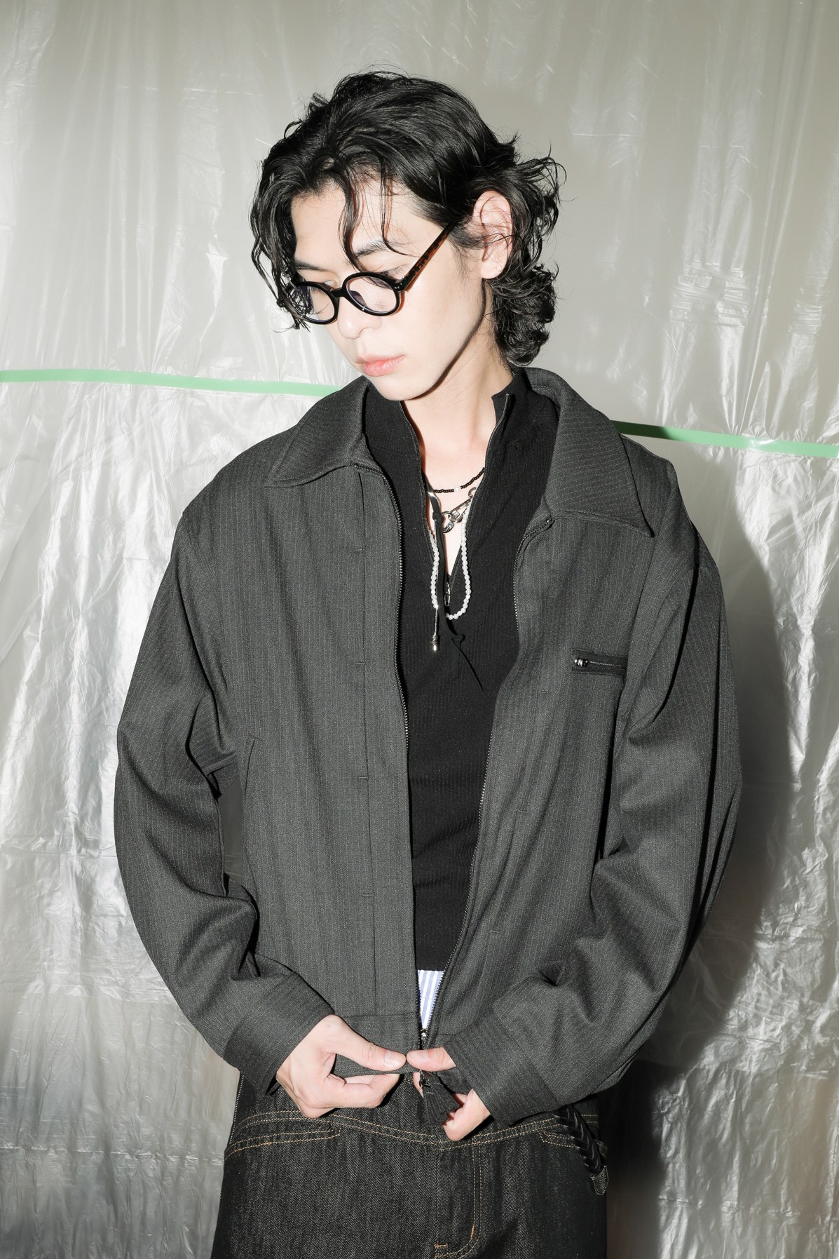 Striped Pin Tuck Jacket #外套
