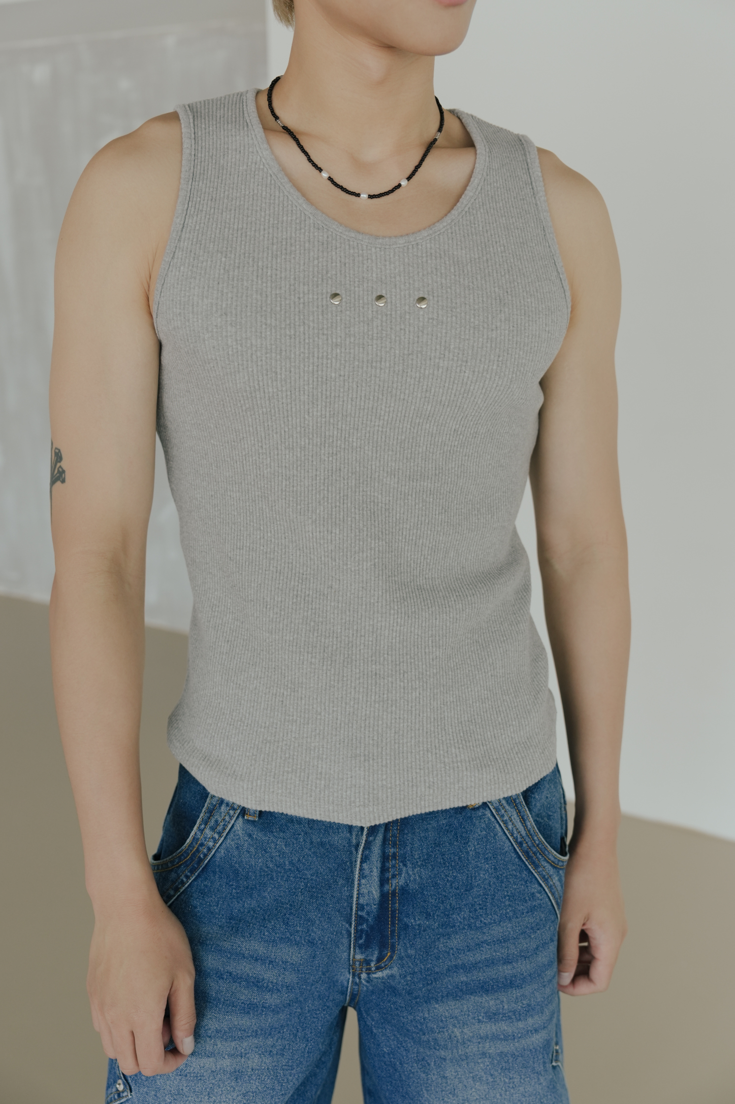Studded Ribbed Tank Top #背心