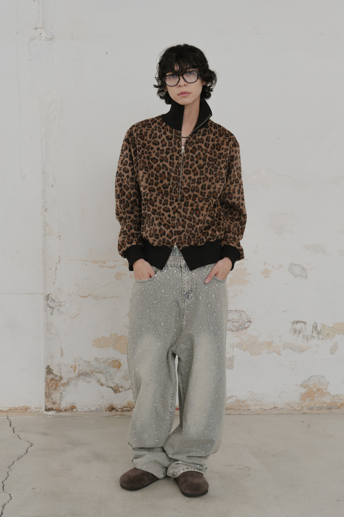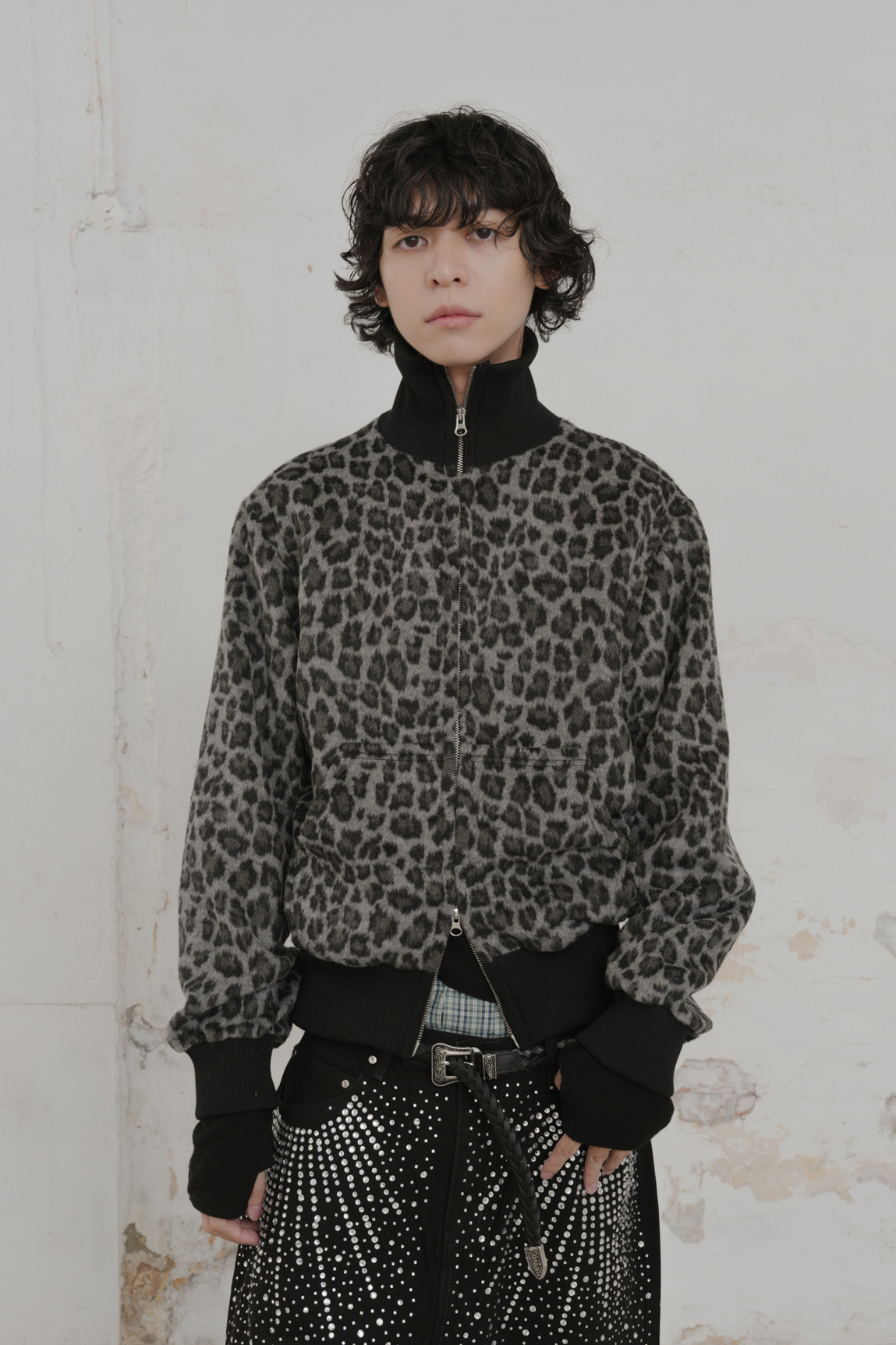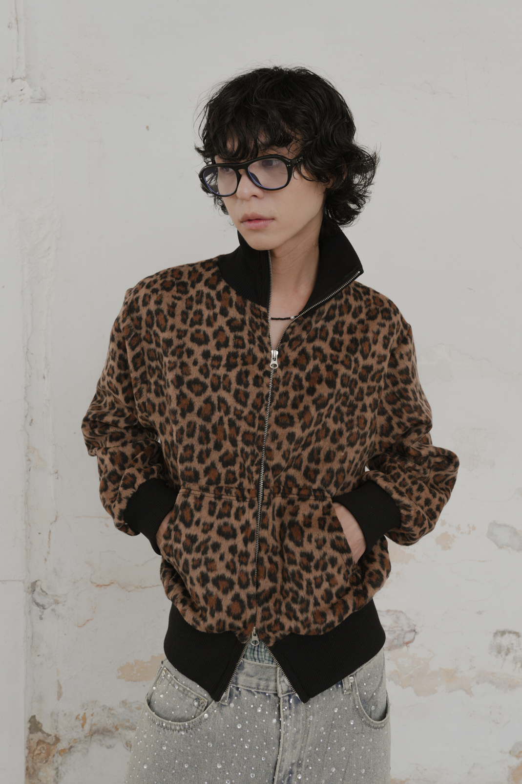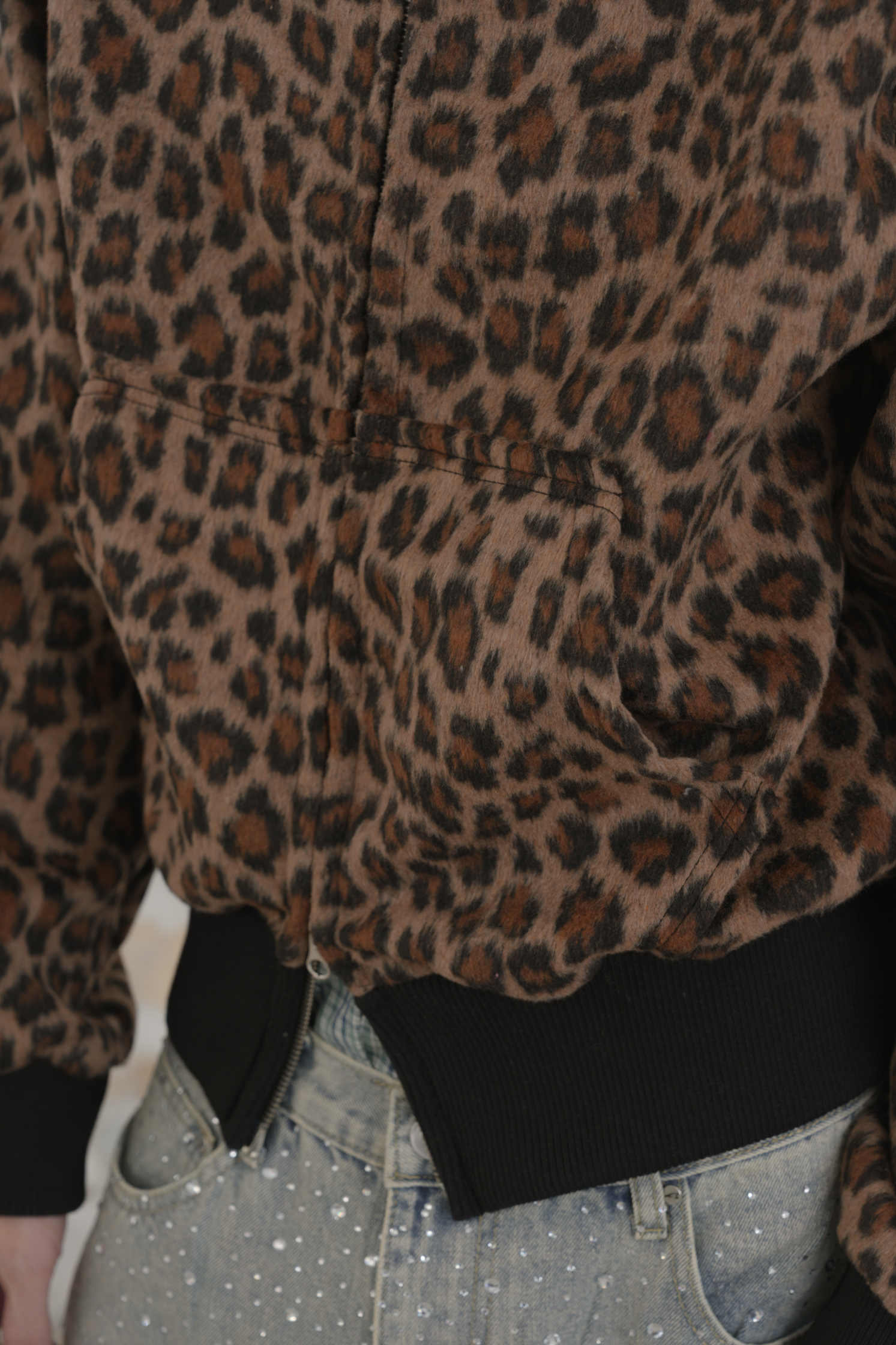 Leopard Cropped Zip-Up Jacket #外套